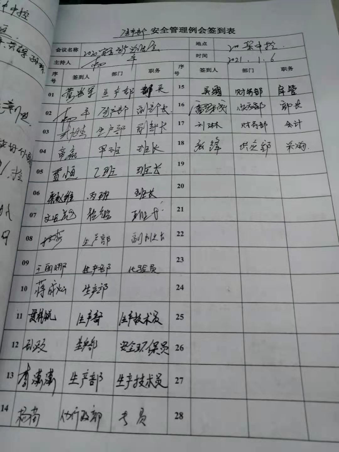 會上生產部部長黃安軍對安全工作進行總結,對2020年安全工作存在的不足提出批評,對安全培訓及事故演練工作給予肯定,并提出2021年安全生產工作重要部署“嚴守安全紅線,對于安全違章零容忍,扎實做好安全工作”。